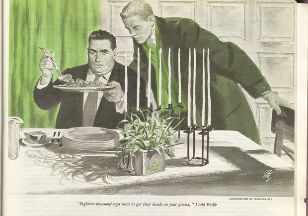 Archie frequently tells us what he (and sometimes Wolfe) eat. He tells us what his likes and dislikes are. He has Fritz to prepare most of his meals, but from his work schedule, his social life, or just for a change, he also eats out, and not always at Rusterman's or an equivalent restaurant. Click here to read all about what Archie has to say about his eating habits.