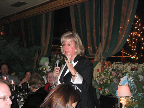 Ettagale Blauer, Coordinator of the Assembly, presented an update on the Wolfe Pack's ongoing slaughter of establishments selected for Pack events. It seems that over the past 25 years, The Wolfe Pack has a suspiciously high incidence of restaurant closings immediately following pack events at the establishments.