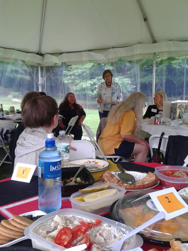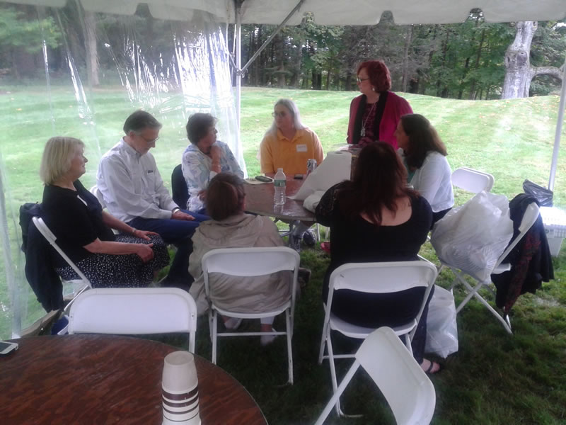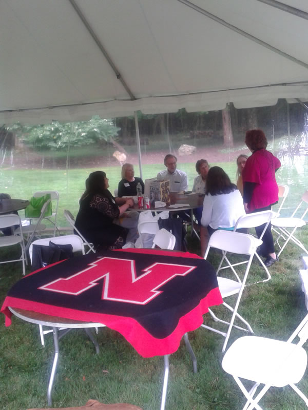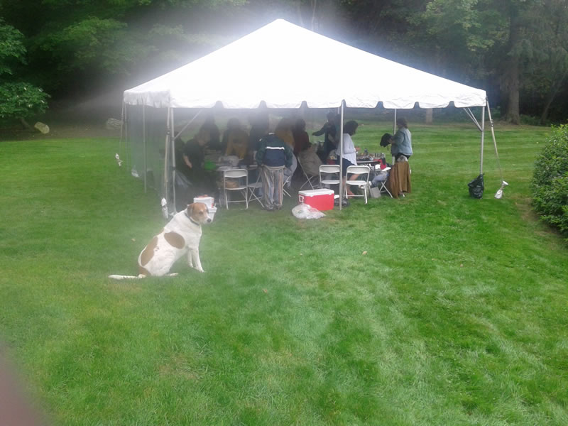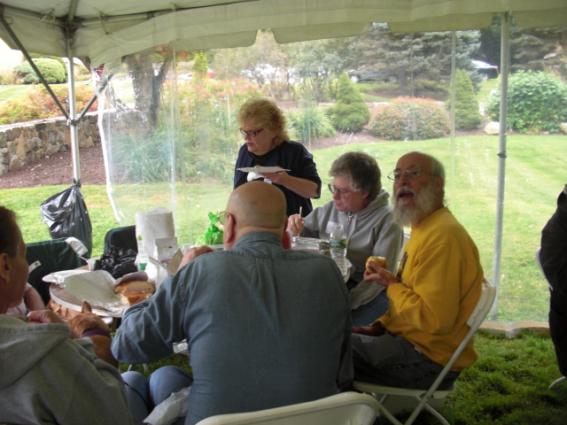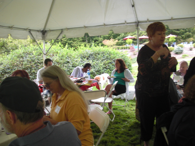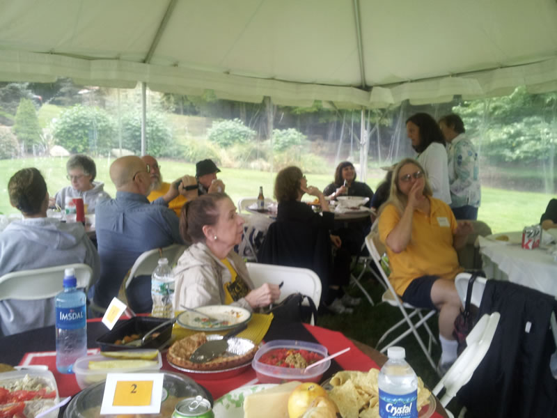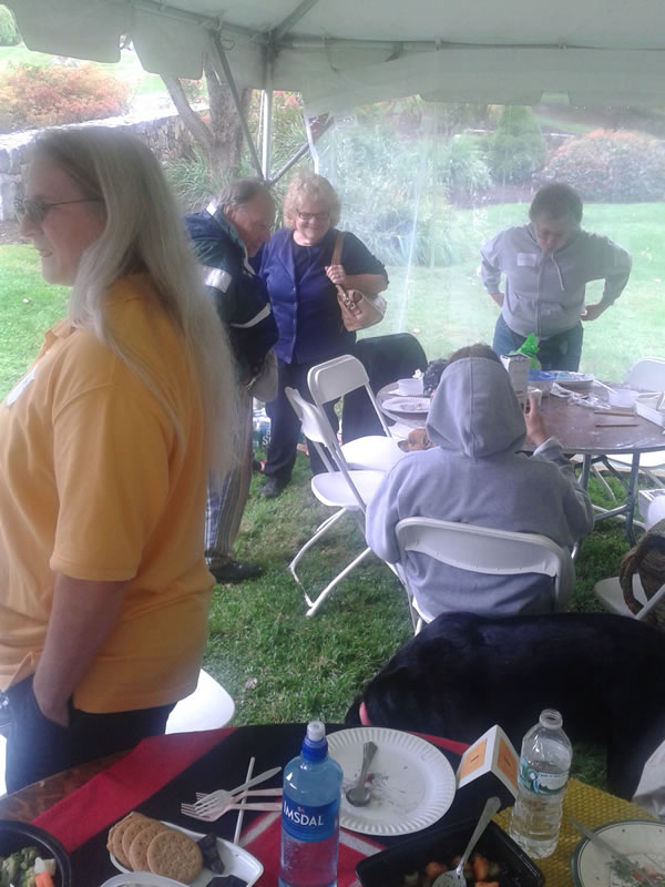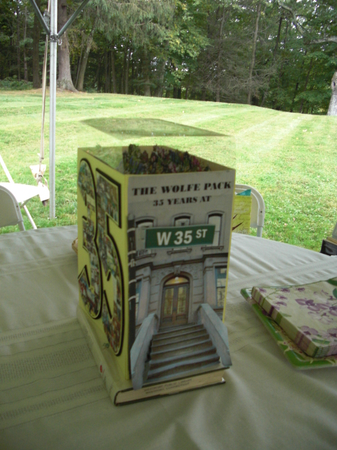 Thanks to arrangements made by Katie Pasko, we had a tent, outfitted with tables and chairs, set up on the lawn where we ate our lunch, chatted, and conducted a very clever quiz on Rex Stout and the Nero Wolfe books, prepared by Ira Matetsky. (Click the link to try the quiz yourselfe!) Adding to this fun was the participation in the quiz by some of the Stout family.