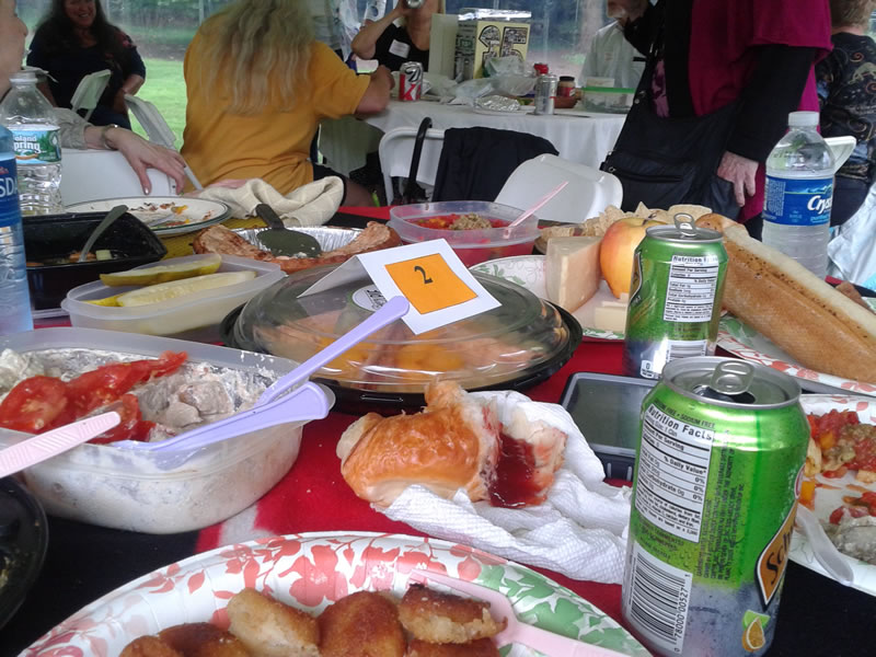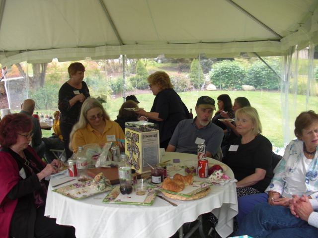We picnicked on the grounds of the home, where we voted for the "Most Wolfean Lunch" and the "Most Wolfean Lunch Presentation." We had three competitors for the prizes: Maggie Goodman, Robert & Neci Novak, and Susan & Lilah Ringler. The contest was close, and Rob and Neci, son and daugher-in-law of long-time Wolfe Pack web mistress, Carol, won both prizes!