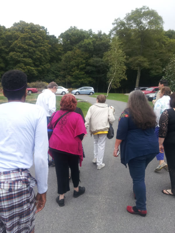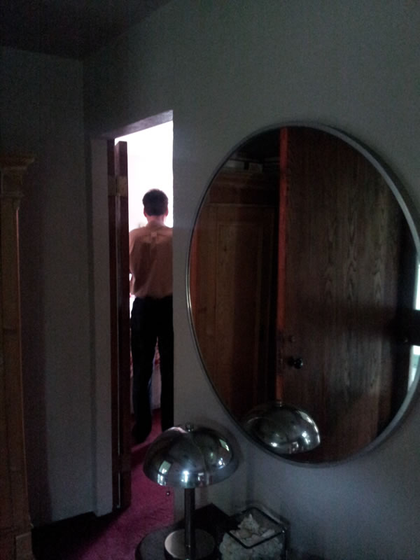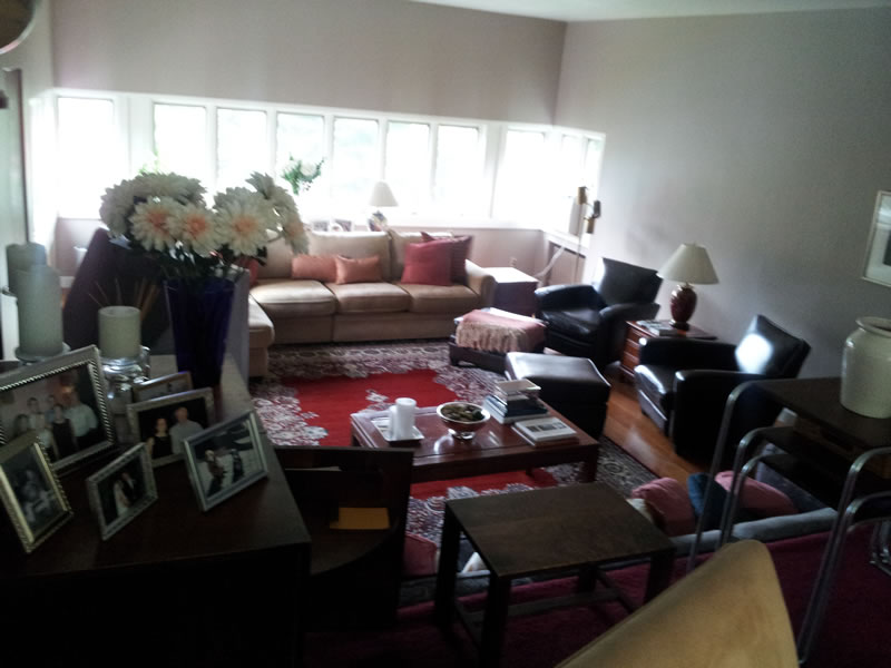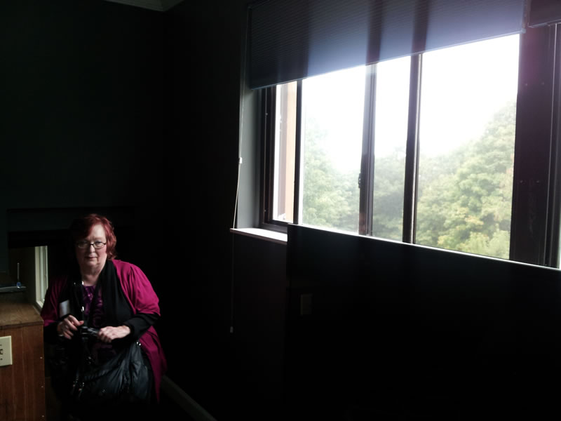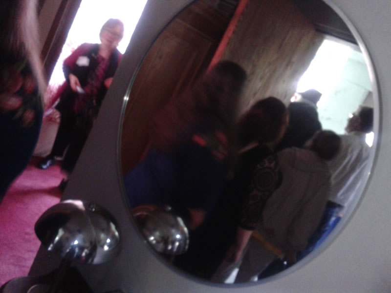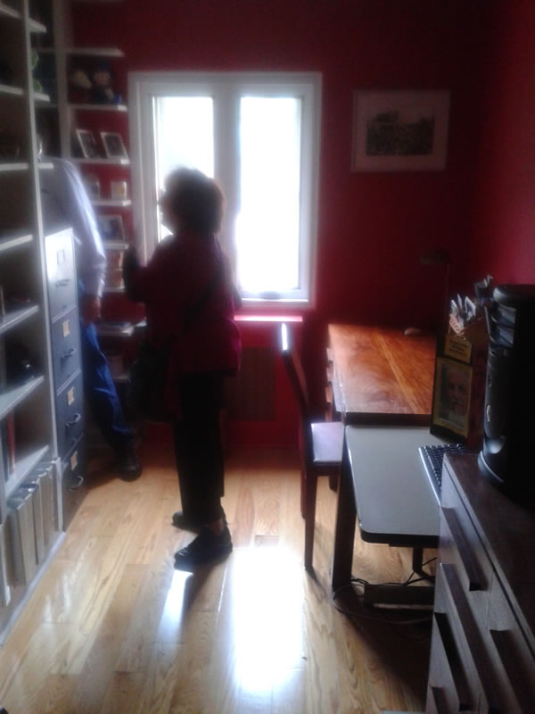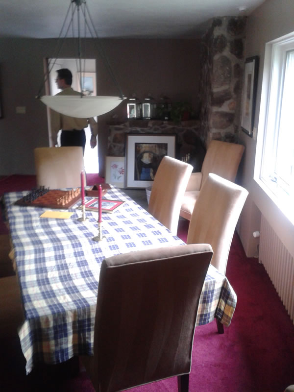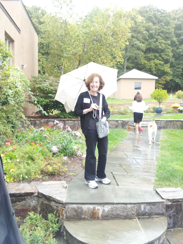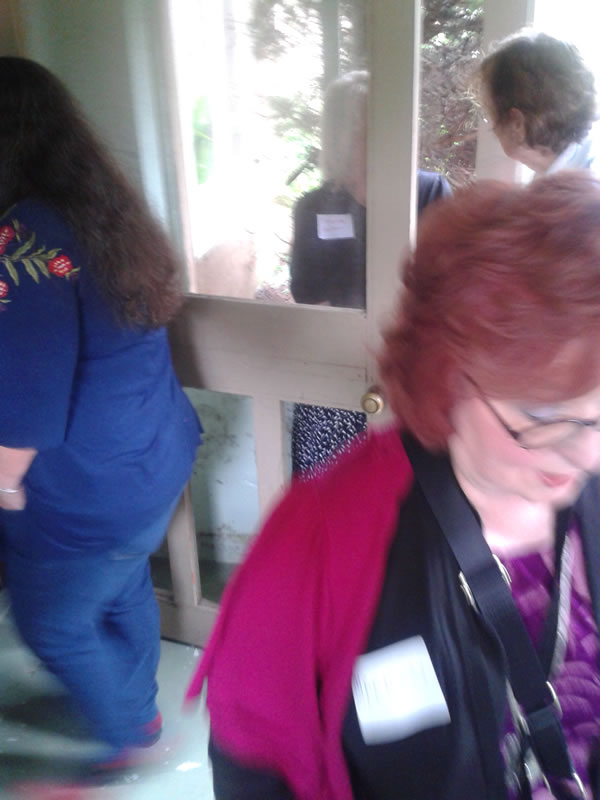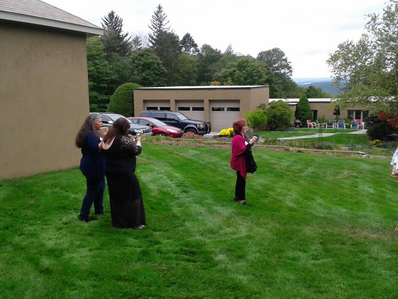 We all took turns visiting inside of the home itself, guided by members of the Stout family, and saw the physically artistic side of Rex Stout, as we admired the desk and shelves he built for his office, and the elaborate closets he built in the master bedroom. We learned that he designed the esthetically rich house and helped to build it, pouring concrete, etc.
