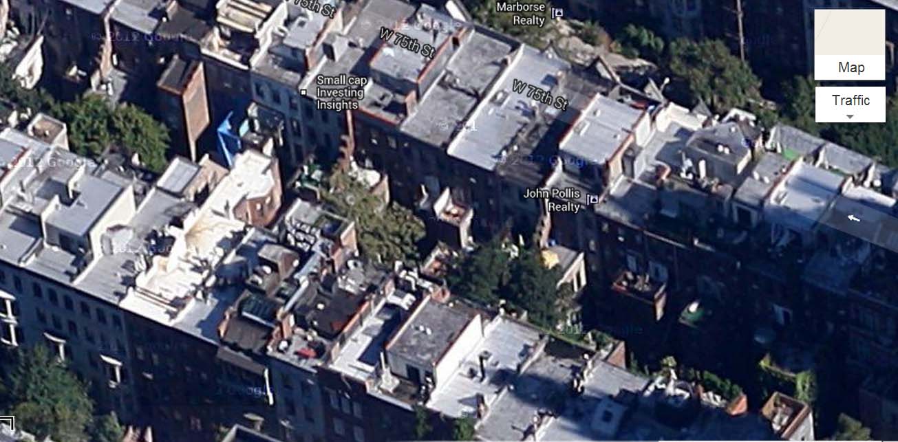 Click here to see an aerial view from Google maps of the irregular shape of the backs of the townhouses on one street on the Upper West Side of Manhattan. Try it yourself on a brownstone neighborhood on Google maps!