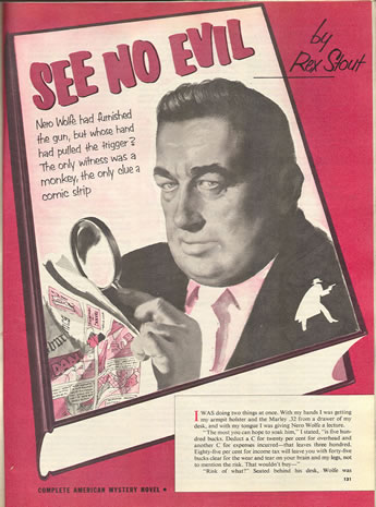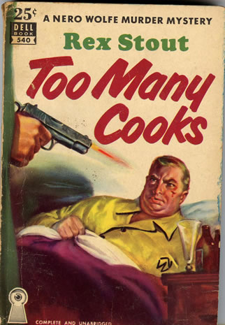 "...Conversely, I've always had a problem with Nero Wolfe's yellow shirt which due to his heft is "the size of a tent." The size is believable. But for me the color is not. If Wolfe's taste is reflected in his subtle masculine surroundings then why would he wear yellow? But when I tried to come up with a better color for Wolfe I couldn't. Red? God, no. Blue? Too business like. Black? Too gangsterish, and it would make him look as if he's trying to hide his girth. Wolfe would never think of such a thing. White? He'd look like he's wearing a wedding dress. Hunter green? Not bad. But the color carries with it a certain kind of upper class pretension. And that is definitely not Wolfe. How about pastels? Pink? That might make his determined bachelorhood suspect. Orange? I don't even want to think about that. I guess given the choices Rex Stout did come up with the best color. But I still can't keep from flinching when I read the description."